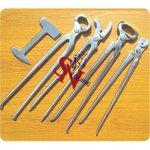 Tack Market. Top Brand and Quality products at rock bottom prices. Farrier 5 Piece Horse Trimming Kit. 15"Drop Forged Nippers with Comfort Handle grips. 14" Heavy Duty Shoe Pull Off Extra Sharp Cutting Edge. Curved jaw clincher, with comfort grip handle. Buffer, Nail Puller. A really nice addition to your tack box, or your shoeing box.