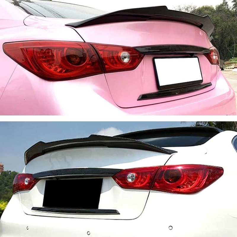 - UPGRADED TECHNOLOGY - Thanks to the second-generation real carbon fiber manufacturing technology, new Q50 spoiler almost reduces weight by 30% but much higher strength and more durable.