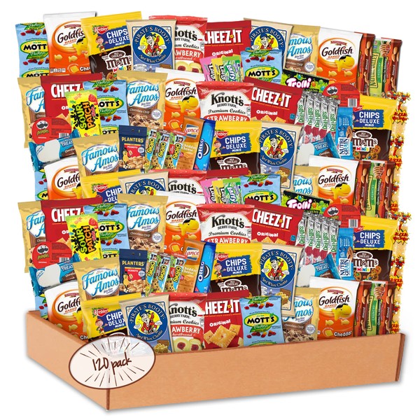 Snack Box Care Package (120 Count) Variety Snacks Gift Box - College Students, Military, Work or Home - Chips Cookies & Candy! shellys delight