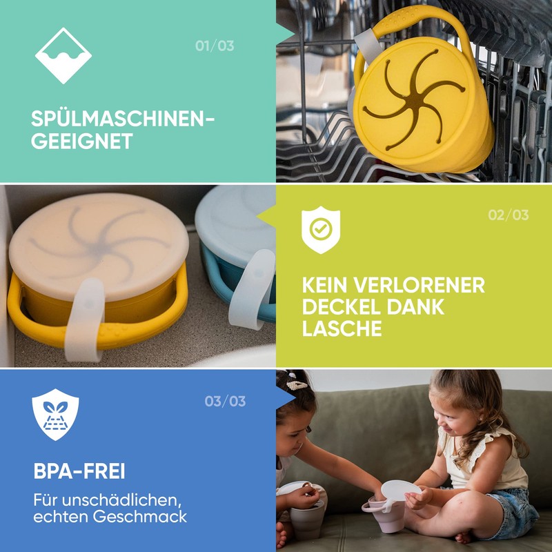 - Your must have: the snack cup from NeLi is ideal for snack-loving kids. No matter whether in the car, in the park, in front of the TV or in between. The snacks for your children are always with you and also ensure neat and slow eating But read for yourself: