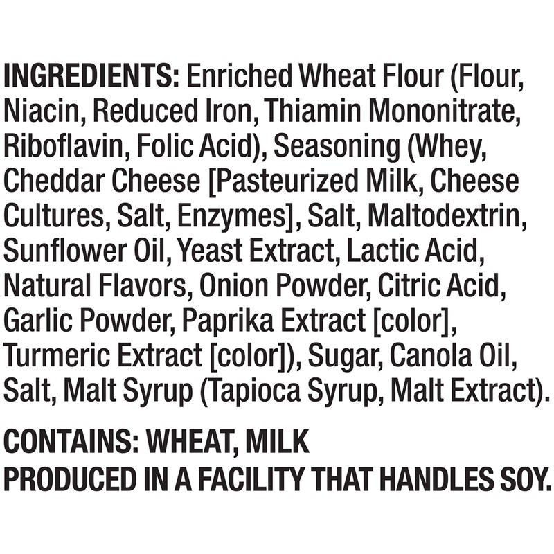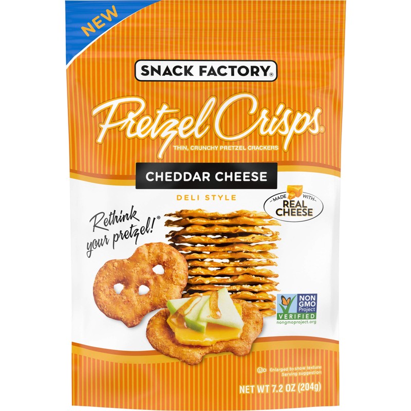 - CHEESY PRETZEL CRACKERS: Baked with real cheddar cheese for rich flavor