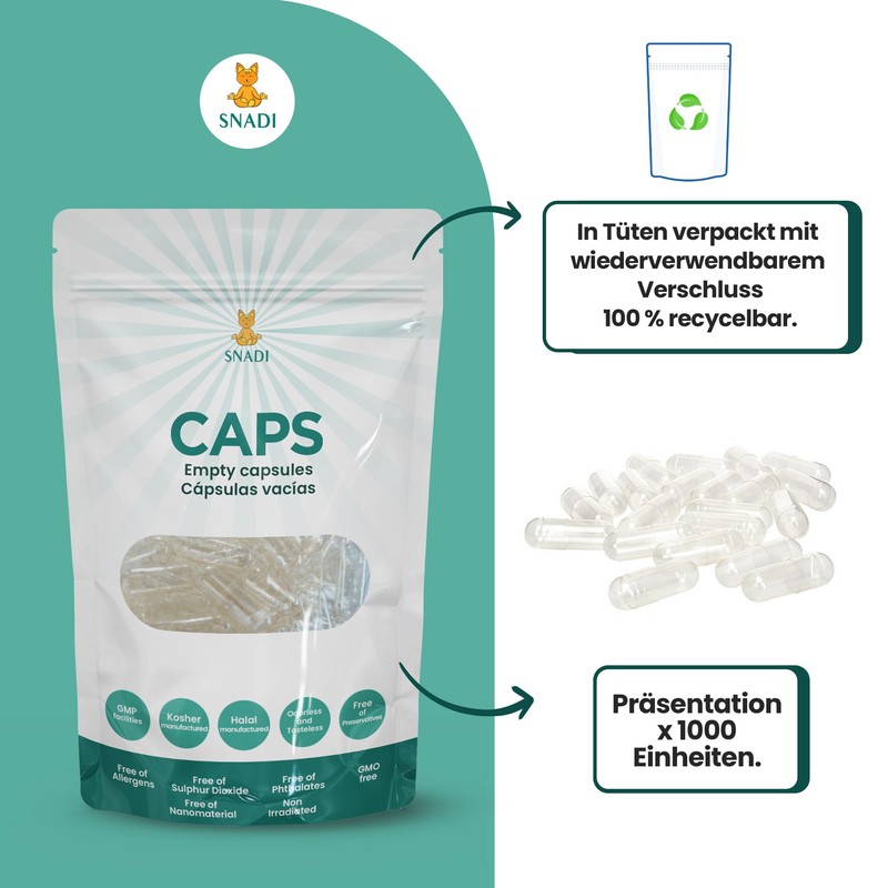 - Snadi - Empty Vegetarian Capsules | Size 1 | Pack of 1000 | Transparent | Kosher and Halal Certification | Refillable with Vitamins and Supplements | Recyclable Packaging