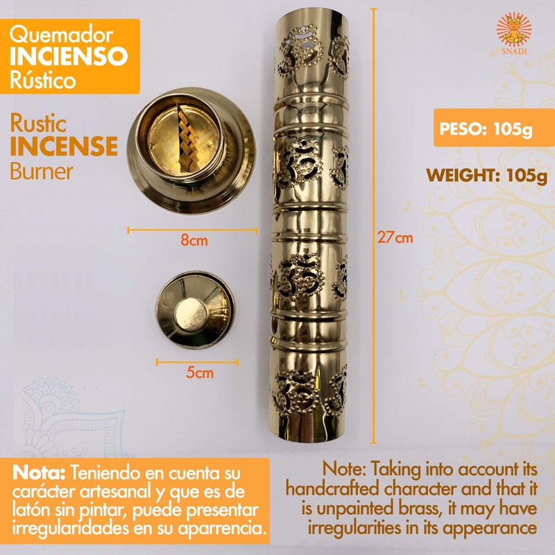 - Elegant stand with symbol of Om - Handmade incense burner made of gold-plated brass with exquisite workmanship. The advantage is that all the ash is collected at the bottom to avoid stains in the room.