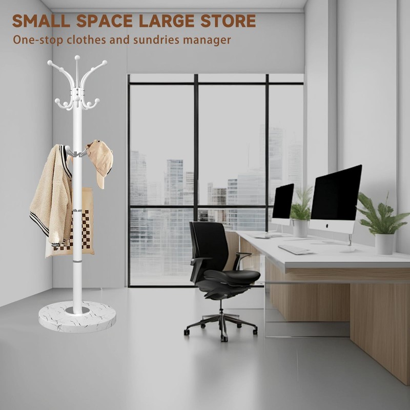 - MODERN STYLE COAT RACK: The design of the white metal coat rack is fashionable and simple. The coat tree can also decorate your home, showing a modern, simple, elegant and personalized home style. The coat rack freestanding can be placed in the porch, living room, bedroom, office and any corner you need