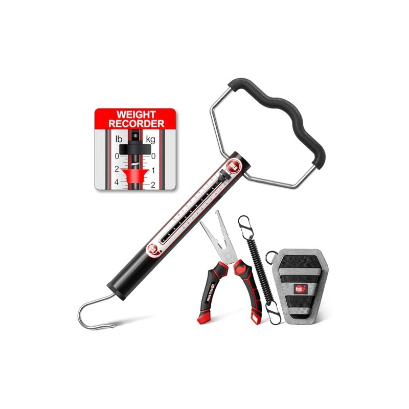 - 【What You Will Receive】A 20lbs Aluminum Tube Spring Fish Scale with weight marker & zero reset. A 7-inch split ring nose pliers complete with a sheath and a coiled lanyard.