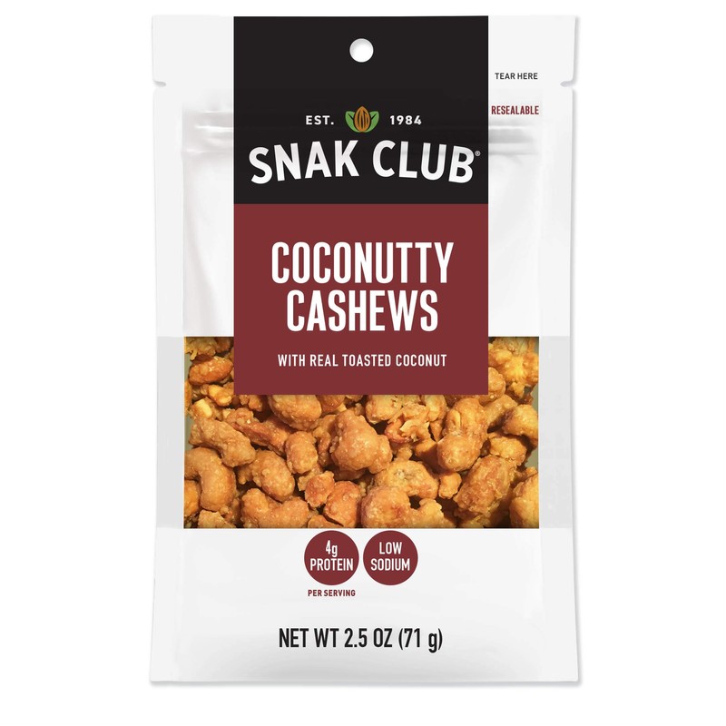 Snak Club Coconutty Cashews, 2.5 Ounce (Pack of 6)