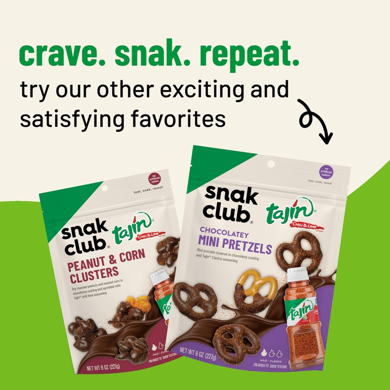 - Other Snak Club Cravings: We don't stop at gummies. From raw, roasted, and seasoned nuts to trail mixes packed with protein, we've got bold snacks for you whenever you need them. We also offer chocolatey and Tajin coated clusters and pretzels.