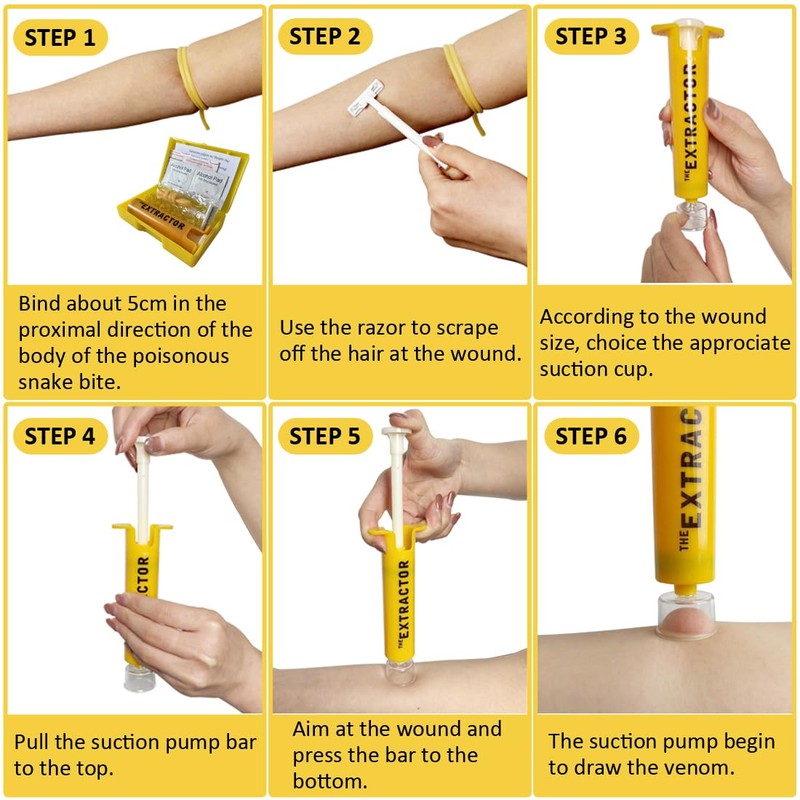 - 【RAPID VENOM EXTRACTION】Act fast in emergencies! Our Venom Extractor First Aid creates powerful suction to effectively extract venom and poison from subcutaneous areas. Safely suction venom from snake bites, insect stings, etc. to minimize the spread of toxins and reduce the severity of injuries.