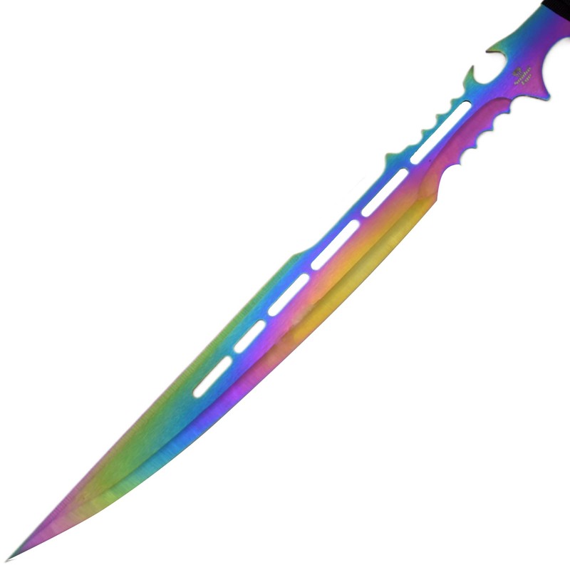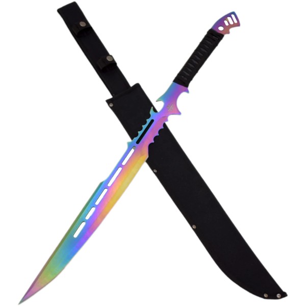 Snake Eye Tactical Fantasy Sword w/Nylon Sheath Machete Outdoors Camping (023, Rainbow)