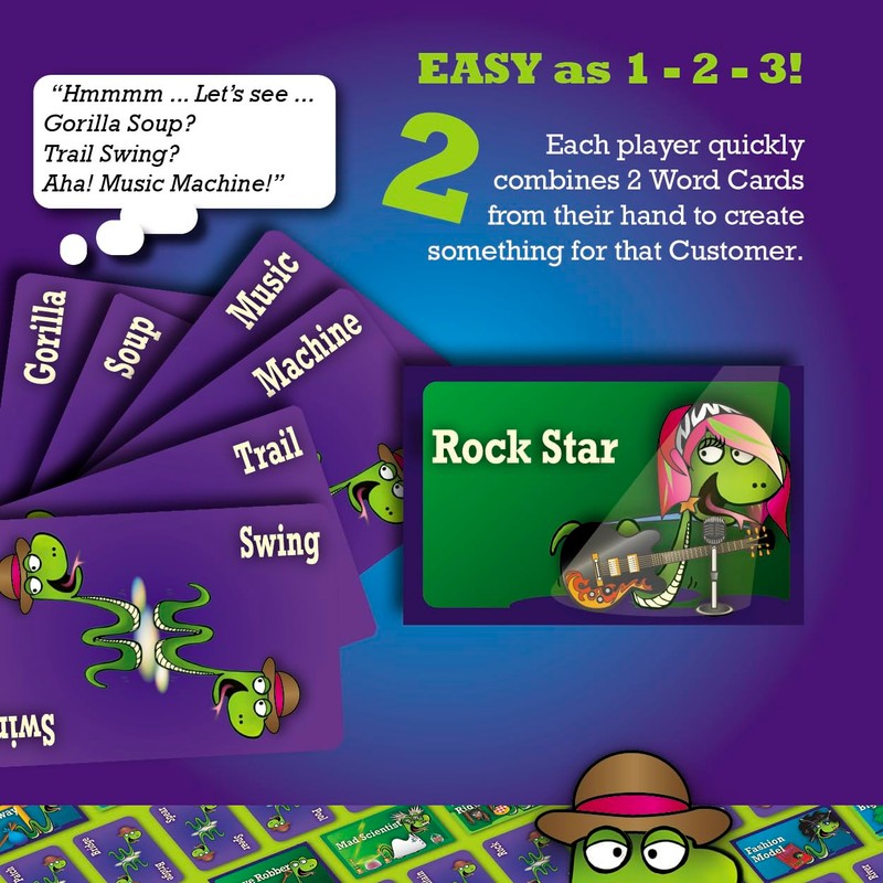 - FUN GAMEPLAY: Quickly combine two Word Cards from your hand to create a zany new product - Rumor Mirror! Burp Balloon! - and pitch it to the player who is the wacky customer for the round.