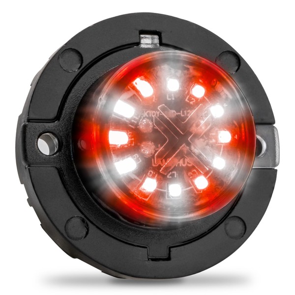 SnakeEye III Red White Clear 12W LED Hideaway Strobe Light [SAE Class 1] 12V 1 Inch Round Waterproof Wig Wag Emergency Flashing Hide Away Fire Police Light Bulb Kit For Firefighter EMS Truck Vehicle