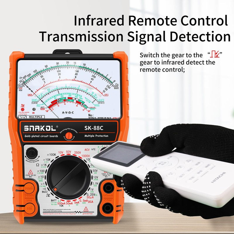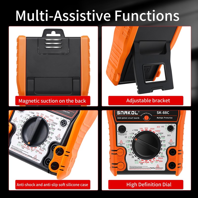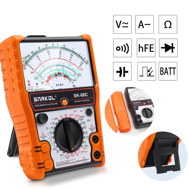 - [More-protection] SK-88C analog multimeter is covered with a layer of silicone protective sleeve, which can effectively resist the daily use of the collision, gold-plated circuit board can greatly extend the working life of the product, built-in protection circuit can be in your wrong use of the product will not be damaged.