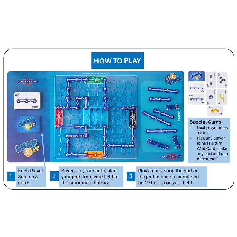 - POWER UP FAMILY GAME NIGHT: SNAP 2 IT, a SNAP CIRCUITS board game that combines fun with learning.