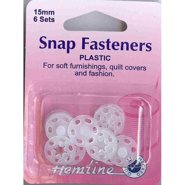 SNAP FASTENERS PRESS STUDS 6 sets 15mm Plastic