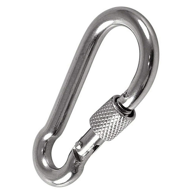 - The carabiner clips designed for fast and convenient connections, it features a spring loaded and self closing which allows for quick and easy connect / dis-connect of items like ropes, chains and straps. Screw gate lock mechanism make it safe. It features a spring loaded gate which allows them to be quickly and securely attached to a wide range of fixing points.