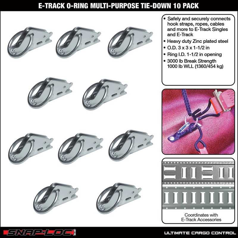 SNAP-LOC E-Track O-Ring Multi-Purpose Tie-Down 10-Pack for Hook-Straps, Rope, Cable, Pickups, Trucks, Trailers, Logistics