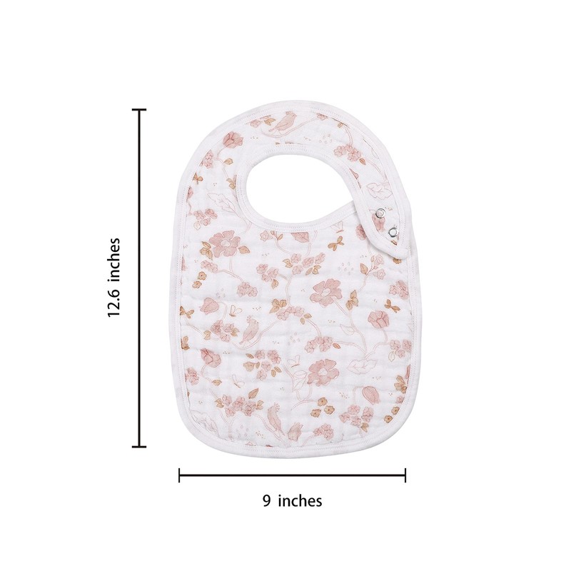 Snap Muslin Bibs for Girls, 3-Pack Baby Bibs for Infants, Newborns and Toddlers, 100% Cotton Muslin Absorbent & Soft Layers, Adjustable Snaps,"Spring"