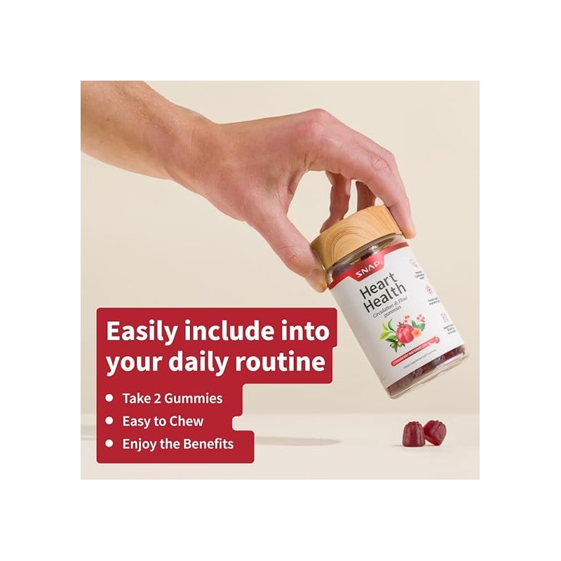 Product Benefits | Snap Supplements Heart Health Gummies, Blood Circulation Supplements, CoQ10 Heart Health Supplements, Blood Flow Supplement, Sugar Free, 60 Gummies |