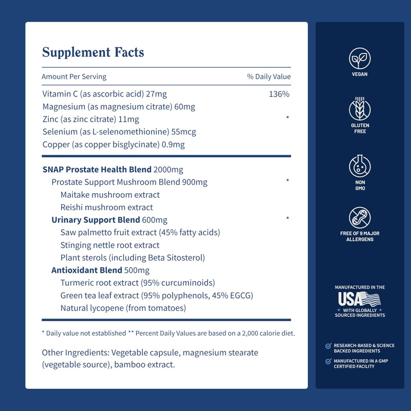 - Promotes Prostate and Urinary Health: A targeted blend of Saw Palmetto, Nettle Root, and Maitake Mushroom supports a healthy prostate, bladder function, and urinary tract health.