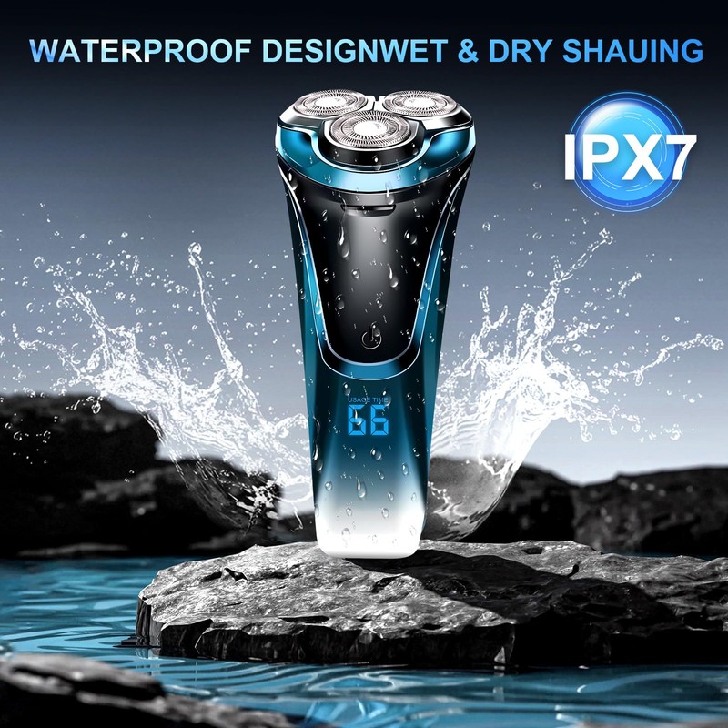 - 【Wet & Dry Shaving Versatility】This blue waterproof shaver adapts to your preference—use it dry for convenience or with foam for a refreshing wet shave. The IPX7-rated design ensures safe use in the shower, giving you flexibility for any grooming style