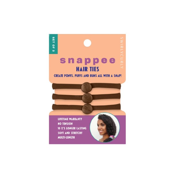 Snap Hair Ties for Thick, Natural, Curly Hair | No Slip, No Tension Pro Hair Tie | Strong Ponytail Holder (3 Pack, Brown)