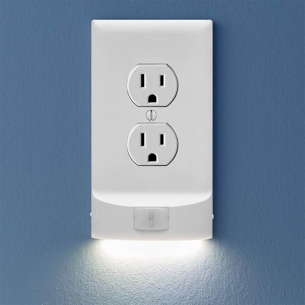 SnapPower Single - SnapPower MotionLight [for Duplex Outlets] - Motion Detecting LED Night Lights Built-in to Wall Plate - Bright/Dim/Off Options - Auto On/Off Sensor - (Duplex, White)