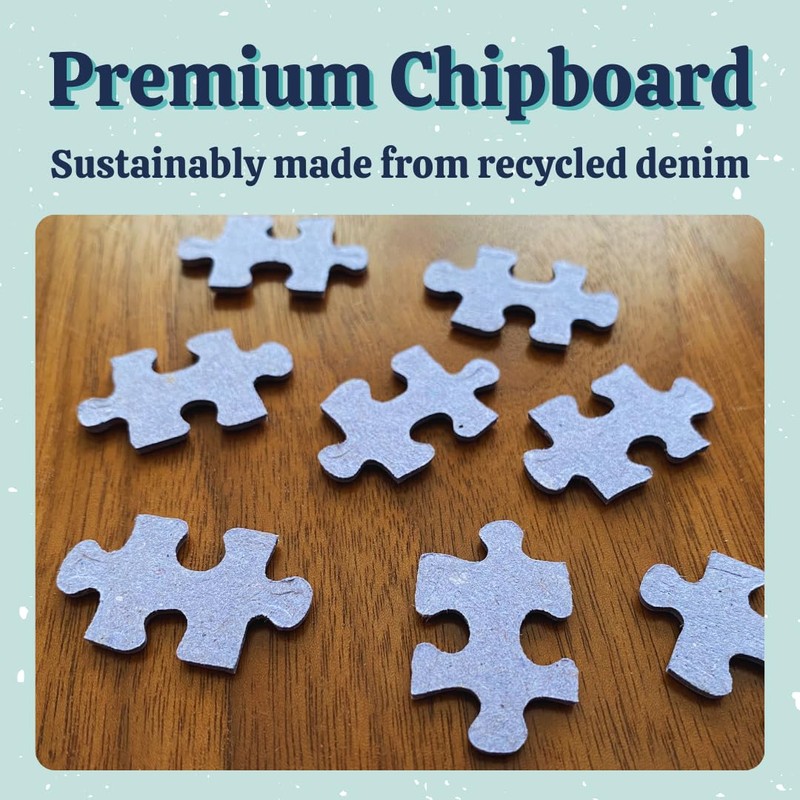 • PREMIUM CRAFTSMANSHIP: Enjoy a high-quality puzzling experience with our 1000-piece jigsaw puzzles, made in the USA using recycled denim chipboard for durability and a luxurious satin finish to reduce glare. This puzzle measures 26.6" x 19.25" when completed, and the compact box measures 10" x 8" x 2" for easy storage.