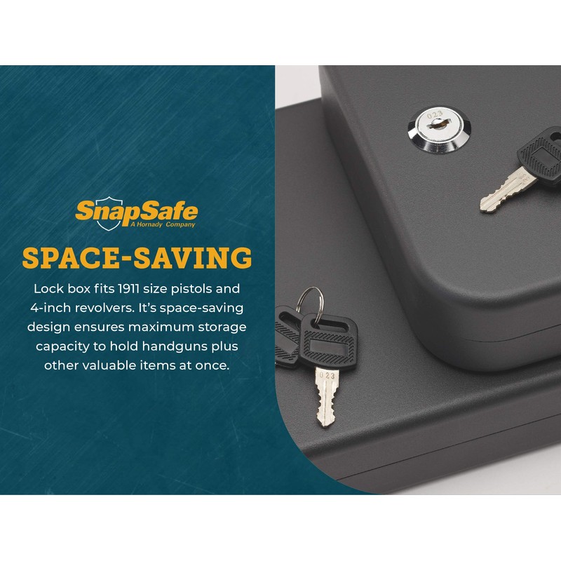 - Security, Everywhere You Want It – Store and protect your handguns, passports, sensitive documents, heirlooms, media cards, ammo and other valuable items in this durable and portable gun safe / lock box by SnapSafe. Includes 1 keyed lockbox and 2 keys
