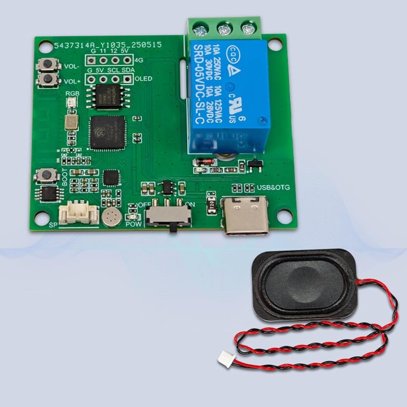 • 1-channel voice relay module with onboard microphone, amplifier speaker, 3 function buttons, extended 4G interface, extended OLED screen interface, and one 10A relay.