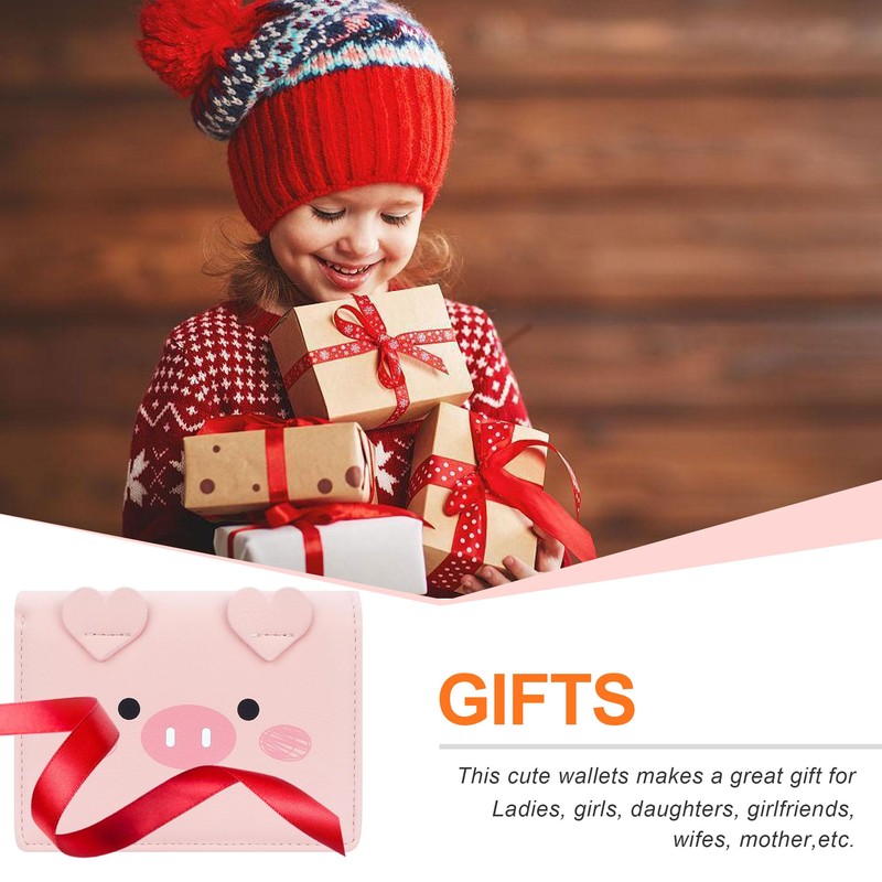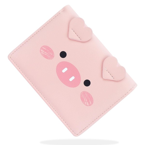 SNCCJ Cute Women's Bifold Leather Small Purse with RFID Protection, Purse Girls with Zip Coin Bag, Pink Pig, Modern