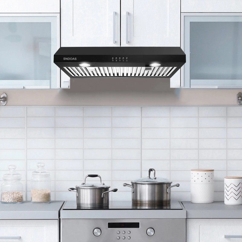 SNDOAS 30inch Under Cabinet Range Hood 600CFM Stainless Steel Button Control LED Black