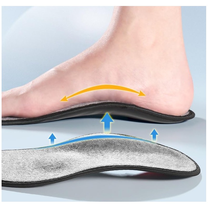 - 🦶【Arch Support】: Designed to offer superior support to the arch, these insoles help distribute pressure evenly, reducing foot fatigue and providing stability for long hours of standing or walking.