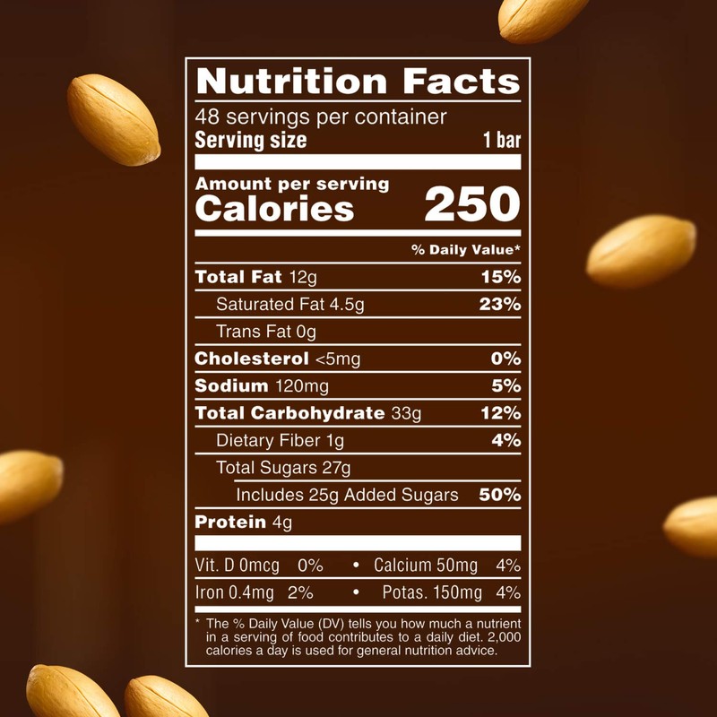 - Made with caramel, nougat, peanuts and milk chocolate