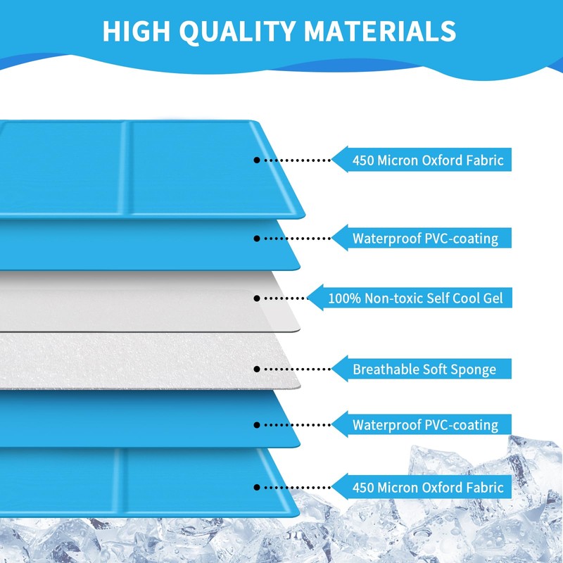 - 100% SAFE & COMFORT - The SNMIX Pet Cooling Mat is made from Durable, High-performance PVC-coated Polyester, filled with 100% non-toxic gel that's safe for both humans and animals. Double-sealed design to prevent leaks. Bring this mat to beat the summer heat and keep your pet comfortable anywhere. * Upgrade 450 Micron Oxford fabric coated with PVC is more durable and anti scratch.