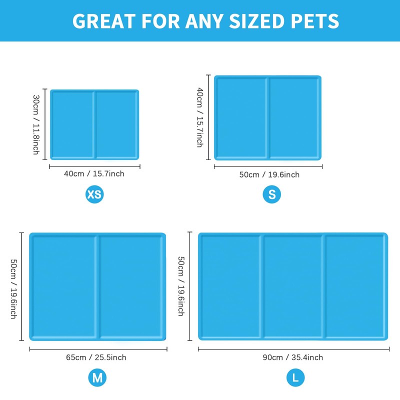 - SELF COOLING & AUTOMATIC RE-COOL - The Pet Cooling Mat employs a pressure activated gel technology that works by absorbing your dog's body heat. It will keep your pet 7-9 degrees below ambient temperature, stop your pet from overheating and dehydration. No need to add water, freeze or chill! It will automatically re-cool itself after 15-20 minutes of non-use.