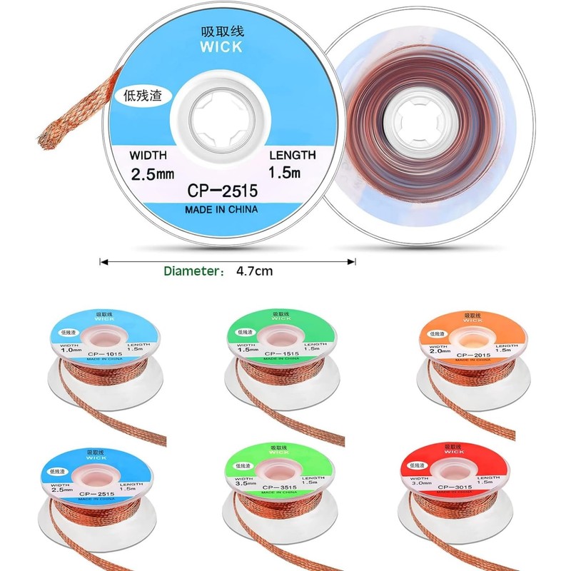 - Material: Desoldering Strand Desoldering wire adopts multi-strand copper mesh, and the precise geometric weaving process ensures maximum surface tension and desolderability, so that the solder is clean and free of residues. Pure copper material, anti-oxidation and corrosion resistance, good thermal conductivity.