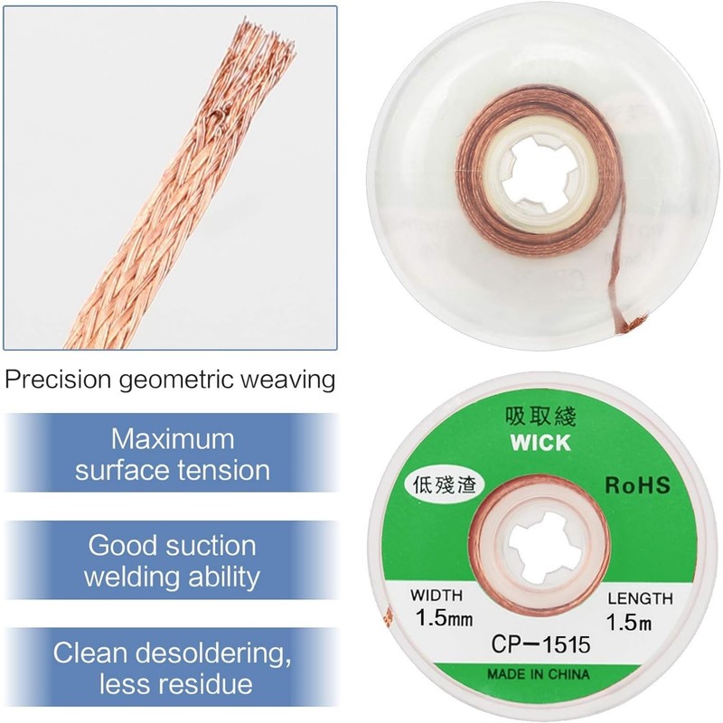 - Usage: Work the wick from the tip, and once the wick and solder are heated, the solder braid quickly absorbs the melted solder, leaving a clean work area.