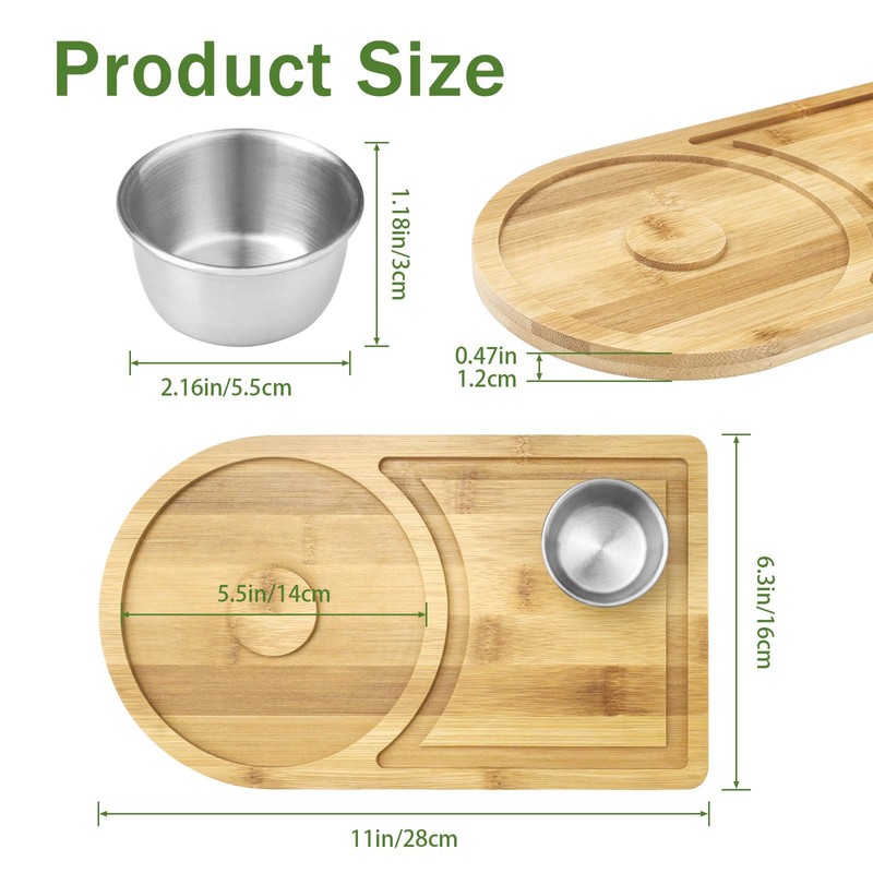 SNOMEL Margarita Salt Rimmer Set Wood Plate with 2.5'' (6.4 CM) Stainless Steel Bowl, Sugar Cocktail Glass Rimmers for Drinks Dish For Up to 6'' (15.2 CM) Home Bar Accessories