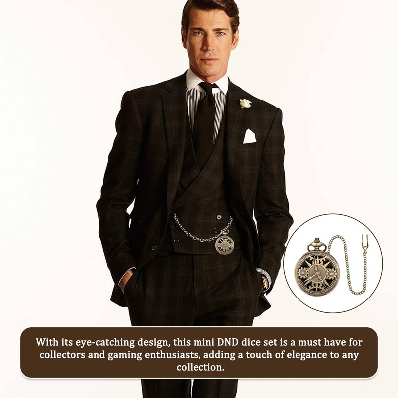 - DND Dice Set Mechanical Design: This small and exquisite dnd dice is packed in a unique steampunk style pocket watch box. Cube dnd cleverly combines retro and elegant pocket watches with modern games to create an excellent accessory that all lovers of table games will love.