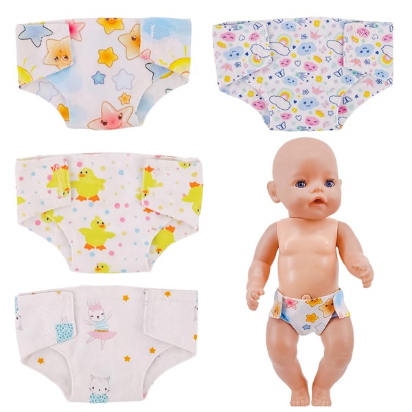 SNONESIY Pack of 4 Nappies Barby Born, Doll Nappies 43 cm, Dolls Nappies, Reusable Dolls, Nappies Dolls, Doll Nappies Fabric, with Velcro Fastener (Multi-Colour)