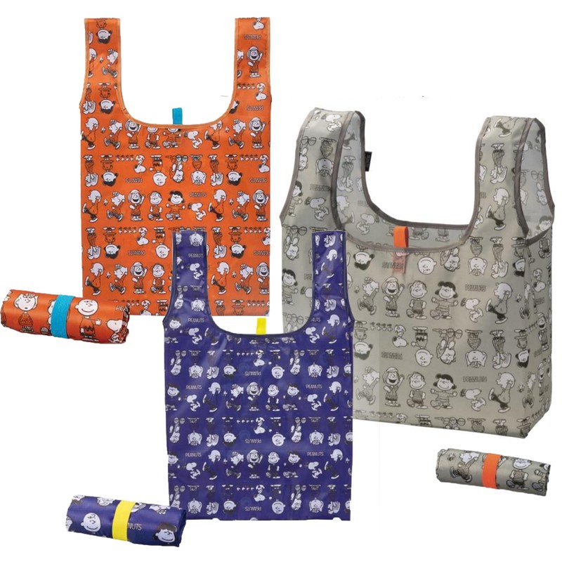 SNOOPY Eco Bag, Shopping Bag, Foldable, Portable, Compact, With Band, Wide Gusset, Bento Box, Size, Cashier Bag, Cute, Character, Snoopy, Navy, Orange, Gray, 1