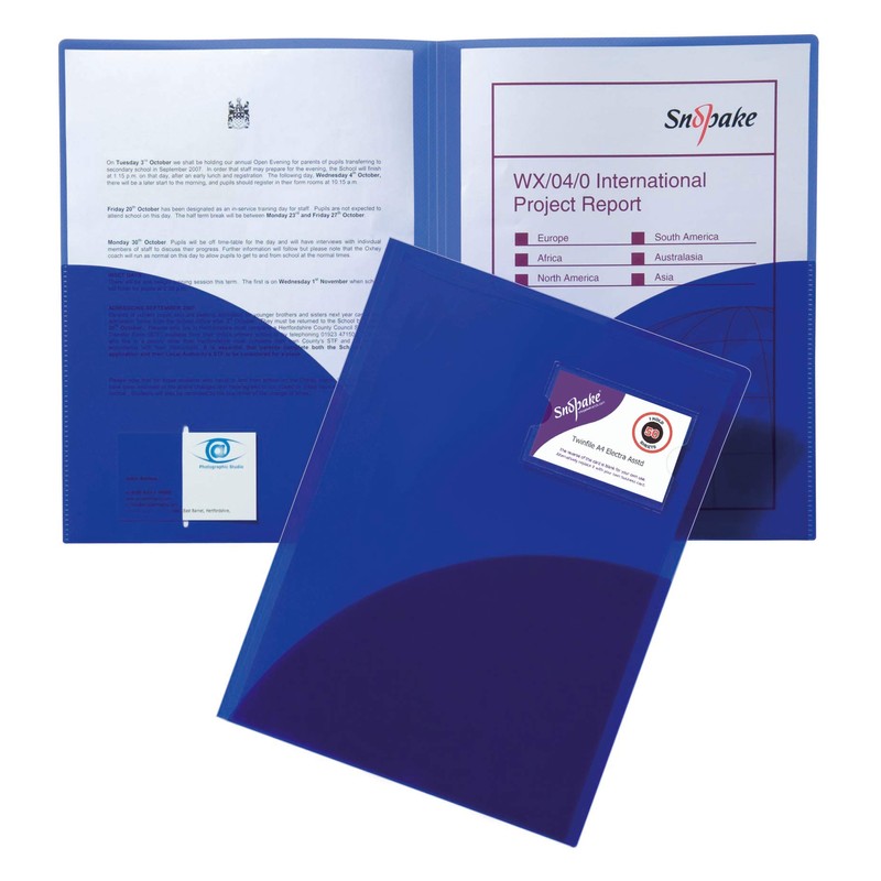 - Available in a bright and vibrant Electra Blue, Snopake’s TwinFile has an attractive superline finish for professional presentations