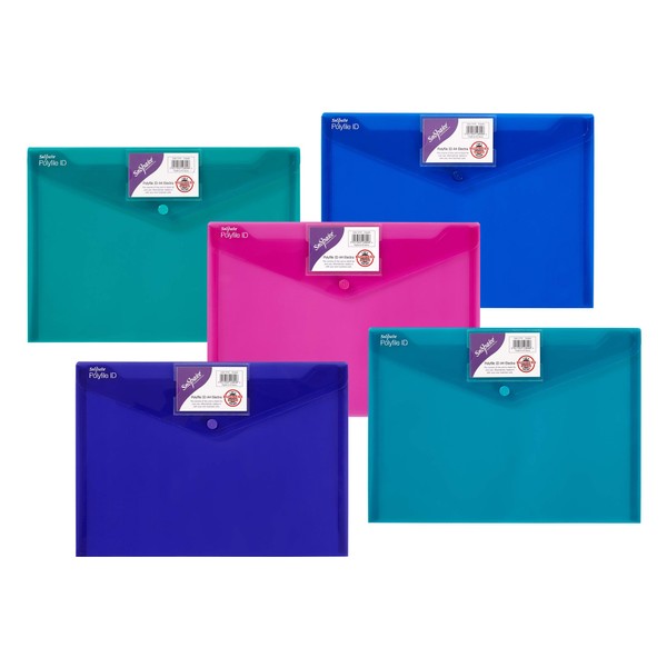 Snopake A4 Polyfile ID Popper Wallet with Press Stud Closure – Electra Assorted [Pack of 5] Ref: 14734