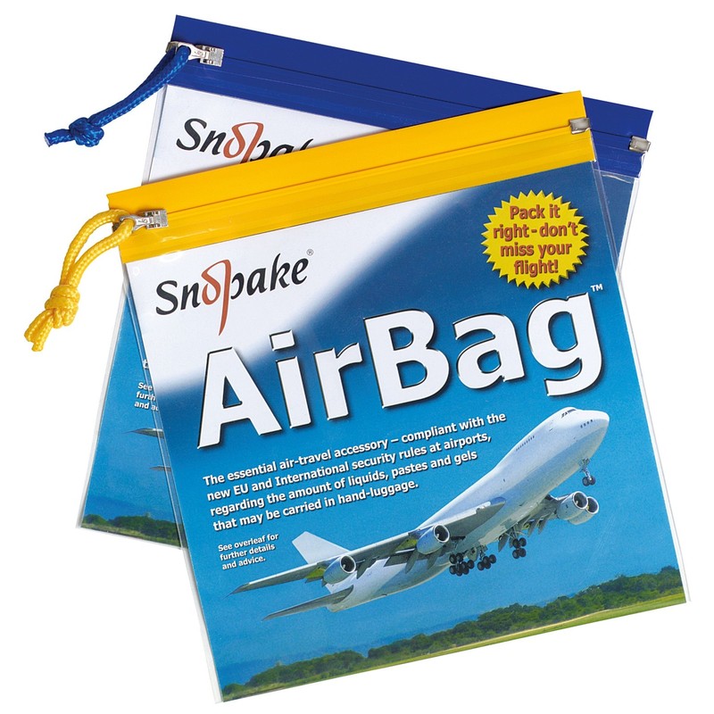 - The ideal travel companion, Snopake’s AirBag complies with EU hand luggage regulations, requiring passengers to present liquids in clear, resealable bags when travelling on board an aircraft