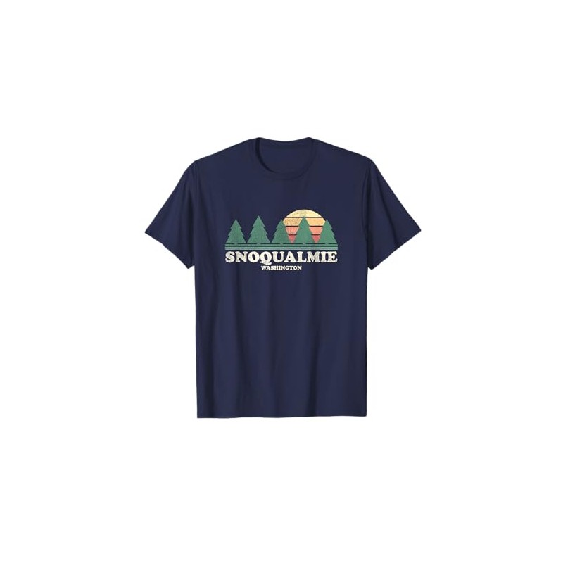 - Vintage Snoqualmie WA T-Shirt with retro sunset through pine trees design tee. Old school distressed & worn looking retro graphic tees & t-shirts makes an awesome holiday, Christmas presents & gift for those who love Snoqualmie.