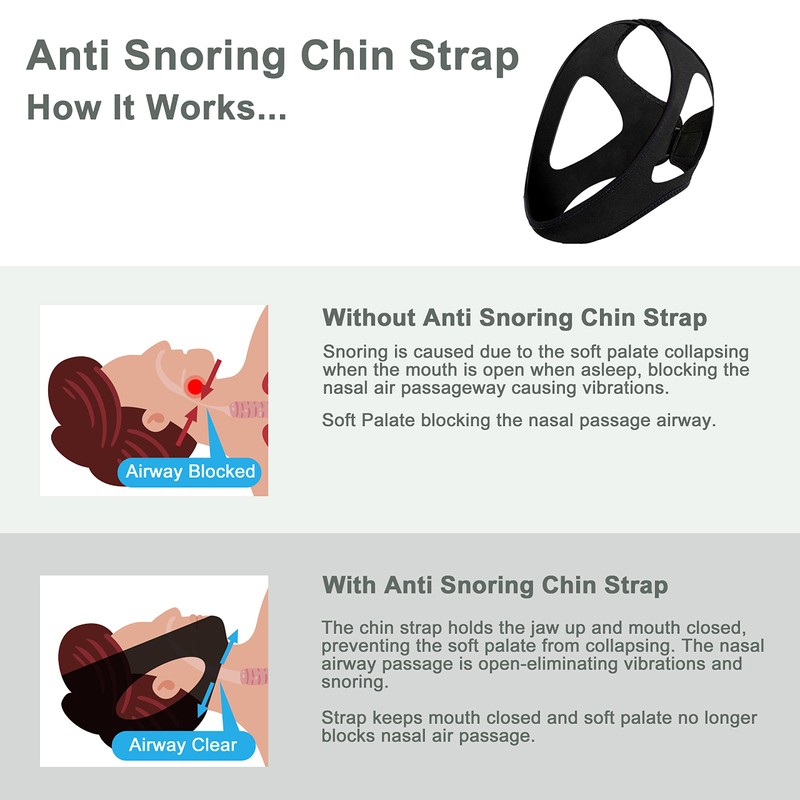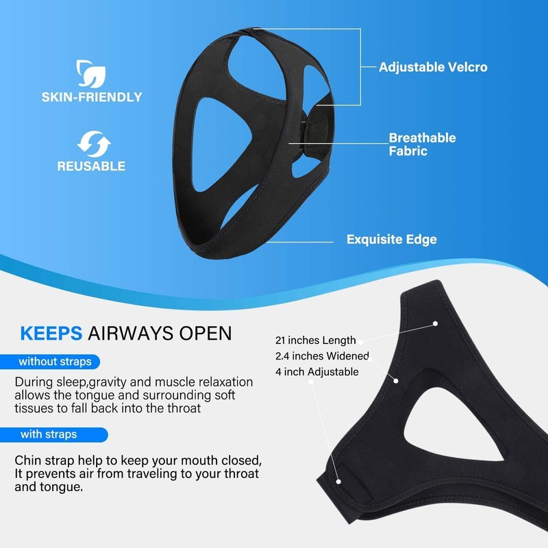 • How It Works: The snoring strap keeps the mouth closed while sleeping through physical pressure and keeps breathing with the nose, helping to reduce snoring during sleep.