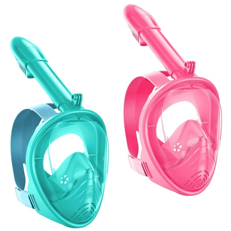 Snorkel Mask Full Face180 Degree Panoramic View Snorkeling Gear with Safe Smooth-Breathing System Anti-Fog Leakproof with Detachable Snorkeling Mount for Kid (Pink + Cyan)