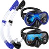 Snorkeling Gear for Adults, Snorkel Mask Set 180° Anti-Fog Tempered Glass, Food-Grade Silicone Anti-Leak Scuba Gear with Dry-Top Snorkel, Diving Mask for Snorkeling, Swimming (Black+Blue)