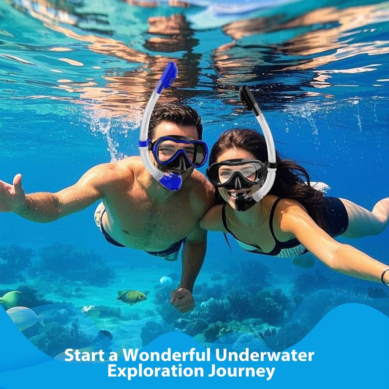 - 【Waterproof Mask Skirt & Adjustable Strap】The double-layer waterproof design of the sealed scuba mask skirt ensures that no water will enter and fits the facial curve perfectly. The buckle design can freely adjust the length of the eyeglass strap and the position of the breathing tube, providing a customized comfort experience; this snorkeling gear for adults is suitable for most men, women and Youth's faces