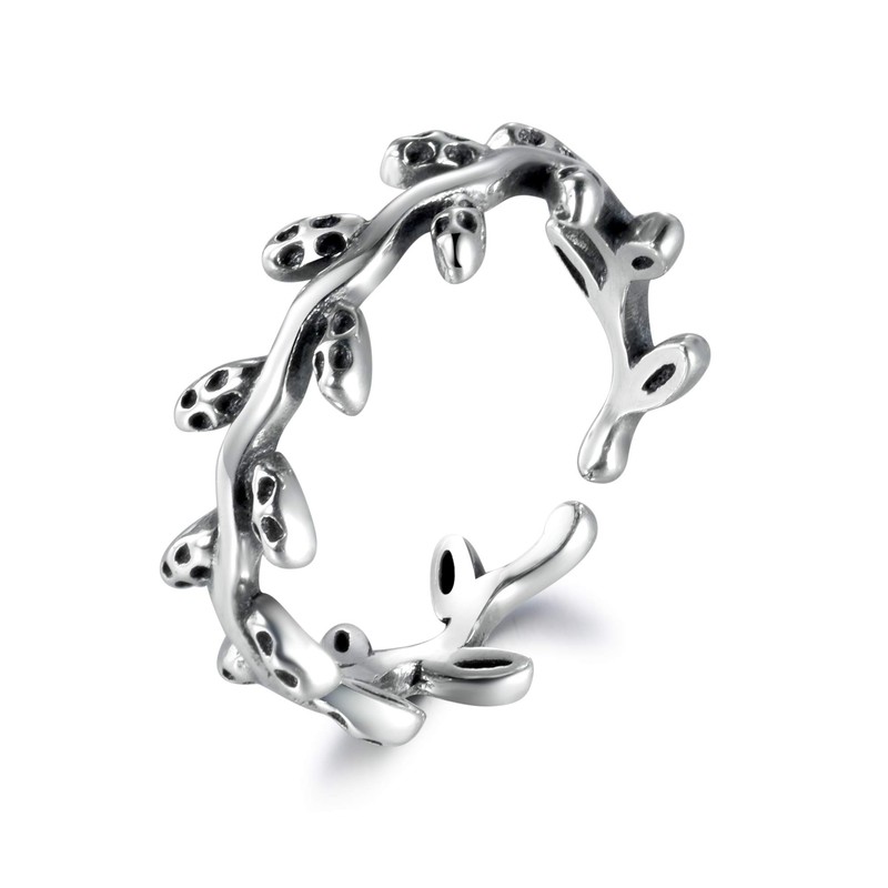 SNORSO Adjustable Sterling Silver Olive Branches Leaves Engagement Wedding Ring for Girls Women